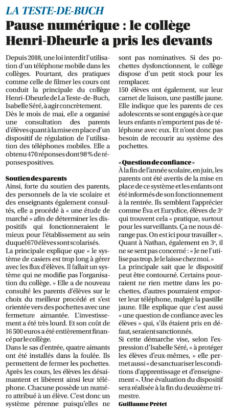 Au collège Henri Dheurle, protéger la concentration des élèves, sanctuariser leur condition d’apprentissage sont des enjeux majeurs !
